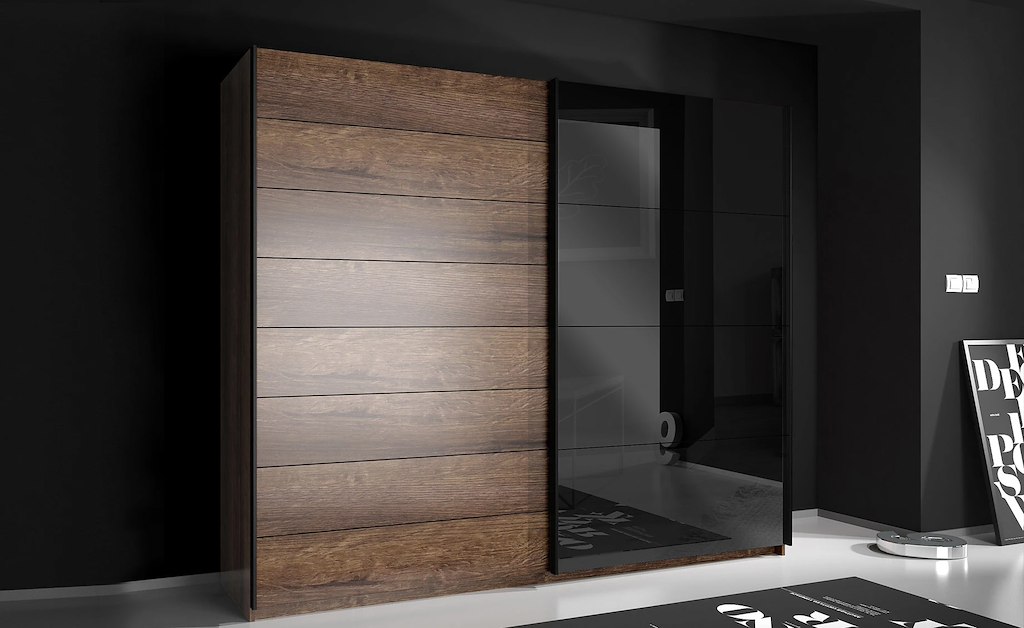 Klizni ormari su vrhunski izbor ako želite moderan plakar.. Korpus iverica grafit siva, front iverica grafit siva ogledalo.